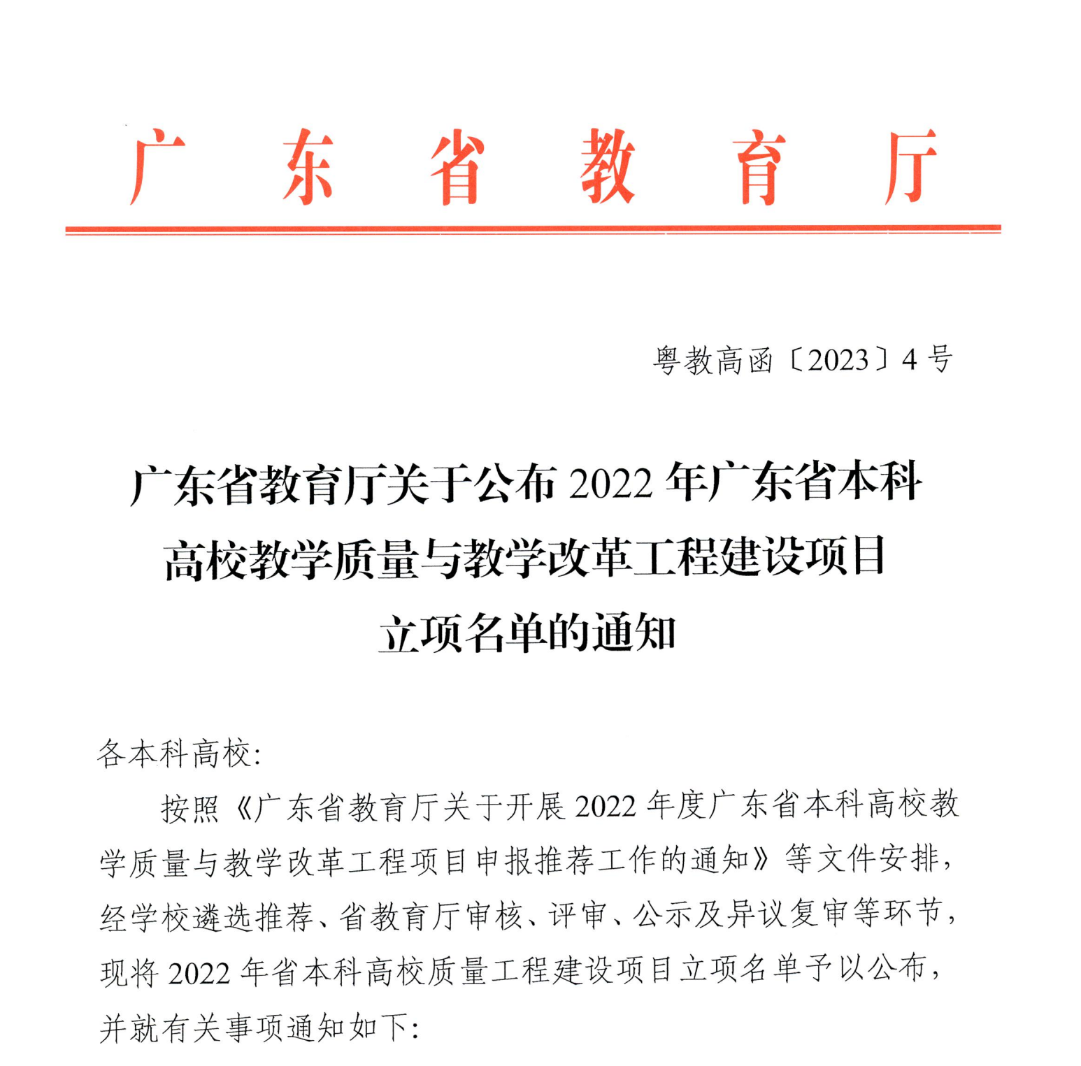近日,广东省教育厅公布了2022年广东省本科高校教学质量与教学改革工程建设项目立项名单(粤教高函〔2023〕4号),William威廉官网,William威廉官网申报的2个项目均获立项,成绩喜人。