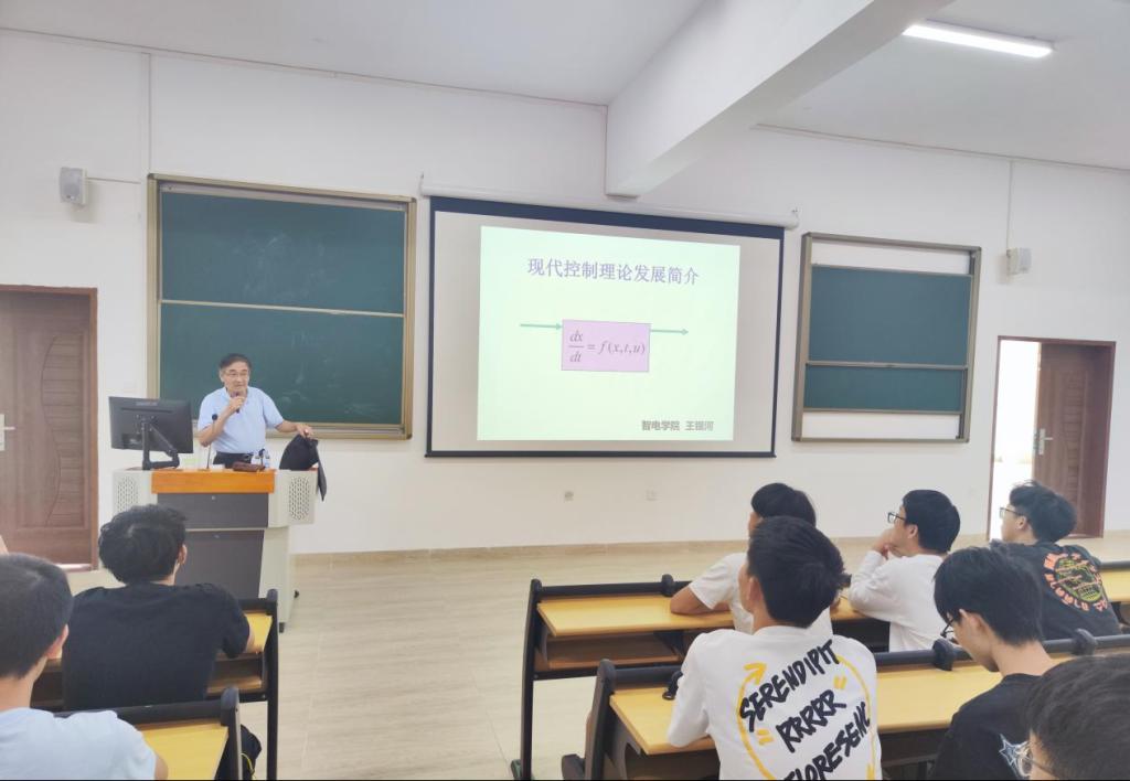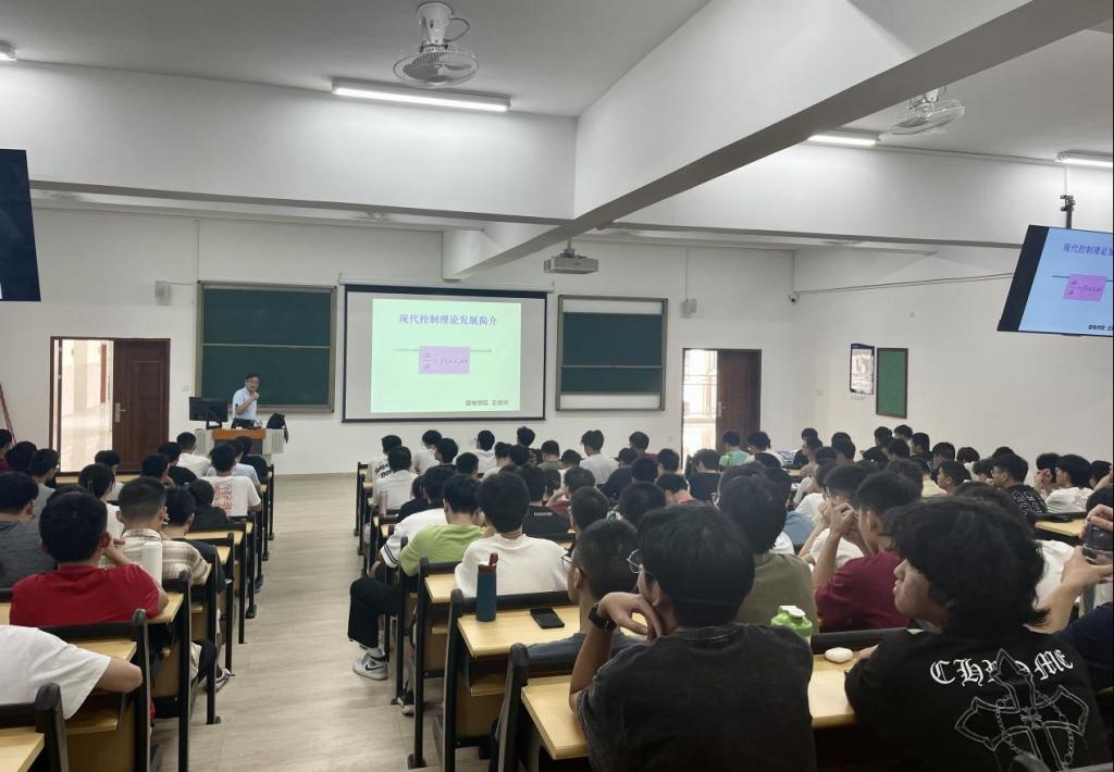 王院长深入浅出地向同学们介绍了现代控制理论的发展简史、控制科学与工程学科国内情况和有关控制理论的重要学术会议及期刊等内容。王院长的讲座展现了控制科学在社会发展和现代化建设中的重要作用,表明了现代控制理论在实际中的应用,为电气专业学生的后续学习和进一步深造指出了新方向。