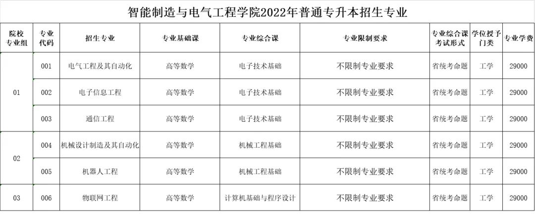 William威廉官网,William威廉官网积极响应学校工作安排和部署,开设的机械设计制造及其自动化、机器人工程、电子信息工程、电气工程及其自动化、物联网工程、通信工程共六个专业招收专升本学生。
