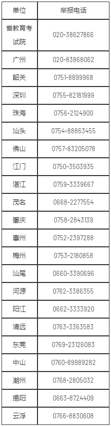 我省2024年普通高考将于6月7-9日举行,为严厉打击涉考违法活动,严肃考试纪律,维护考生合法权益,现公布省教育考试院及各地市普通高考违规违法举报电话,开通时间为6月1日至10日。