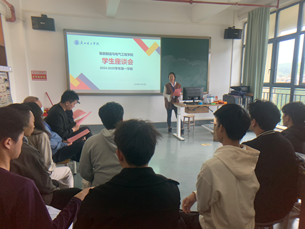 11月19日中午,智能制造系举行了2024 -2025学年第一学期期中学生座谈会,其会议主题为 “倾听学生心声,促进学院发展”。此次会议有吕在艳书记、庞姗系副主任、唐华平教授、李瑜煜教授、吴晟霖老师以及学生代表共同参加。该座谈会旨在与学生探讨在学习、生活等方面的困惑与问题,通过倾听学生的意见,更好地了解学生的想法。同时,也能让学生感受到教师的关心与支持,进而增强师生之间的信任与合作。