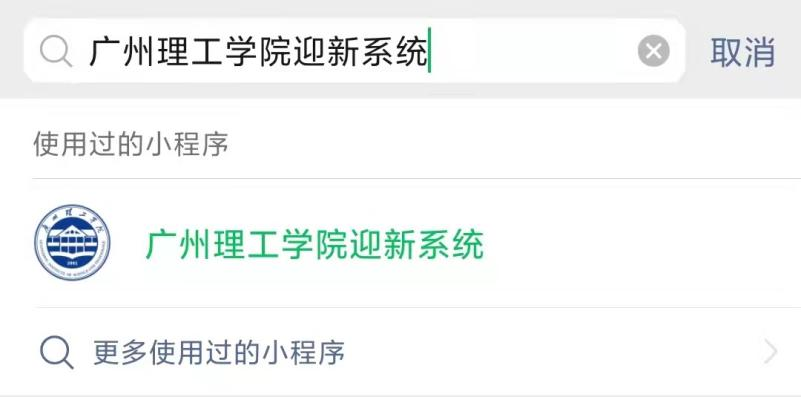 方式一:在微信小程序搜索框处输入:“广州理工学院迎新系统”,选择带有学校logo的小程序,点击可进入迎新系统小程序。