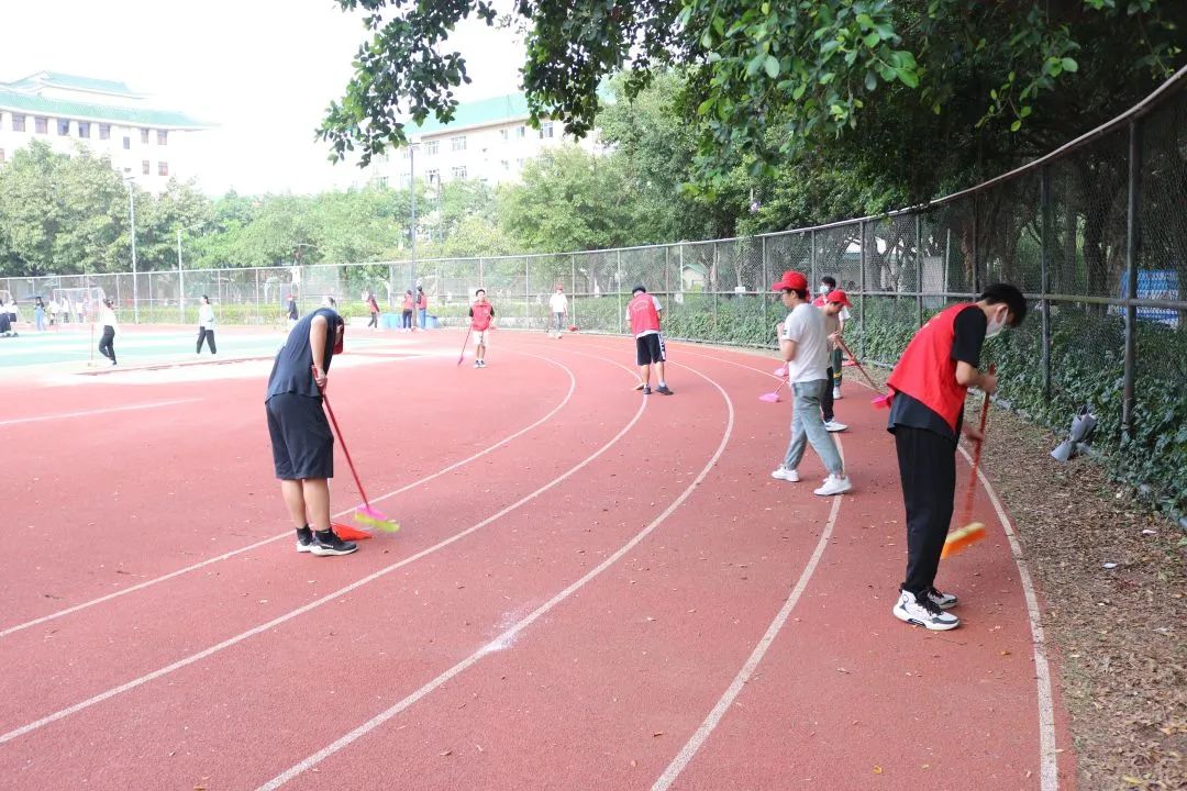 在劳动过程中,党员发展对象们分工合作,密切配合,一部分同志先用水打湿跑道,再用扫把和畚箕细心清理,直至清除干净;另一部分同志用扫把和簸箕清理地面和草坪中细小的包装纸屑,用垃圾袋清理沙坑中的大块垃圾。每一位党员发展对象都树立起了“校园是我家,清洁靠大家”的理念,党员发展对象们干劲十足,现场气氛活跃,经过大家几个小时的努力,整个大、小足球场焕然一新。