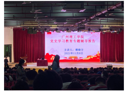 为了扎实推进党史学习教育,将立德树人作为立身之本,着力构建“三全育人”体系,塑造有高尚人格的时代新人,11月8日上午9::30,在广州理工学院13栋1号报告大厅,举行了党史学习教育专题辅导报告讲座,本次讲座特邀请了广州市天河区环保局傅晓方局长主讲、辅导员、老师、各二级学院学生代表参加。
