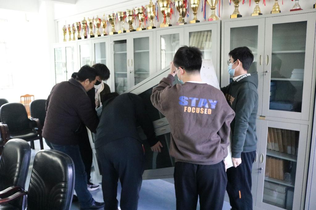 活动开始前,陈新喜老师将到场的学生党员分为三组:第一组负责搬运资料;第二组负责整理办公室物品;第三组负责卫生清洁。大家分工明确,个个精神饱满,劳动热情高涨,机电楼里到处都是党员志愿者挥汗劳动的身影。经过1个小时的辛勤劳动,机电楼各个办公室面貌焕然一新。