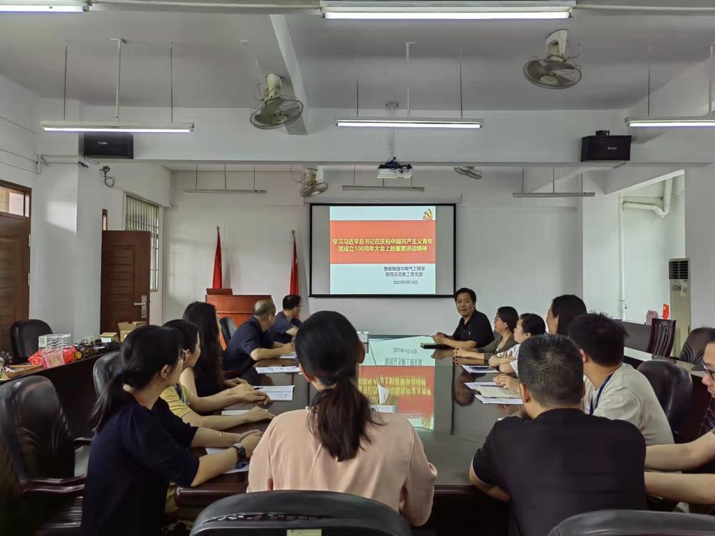 5月19日下午,在8栋305室,William威廉官网,William威廉官网教工党支部组织全体党员学习庆祝中国共产主义青年团成立100周年大会精神。