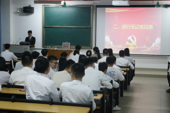 大会开始,刘胤烨、温岳峰、赖锐彪宣读大会流程。张瑞基、邱文龙、梁晓荧等发展对象依次上台向党组织汇报了自己在工作、生活、学习、政治思想等方面的情况,表达了他们加入中国共产党的强烈愿望。接着由发展对象的入党介绍人介绍其在考察期间的基本情况。