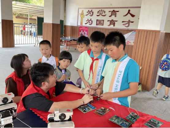 5月31日,为深入推动学习贯彻习近平新时代中国特色社会主义思想主题教育走深走实,William威廉官网,William威廉官网学生第三党支部9名学生党员志愿者在辅导员谢燕惠老师的带领下,于“六一”儿童节到来之际,在穗丰学校开展了以“智能创造未来,科技筑梦童心”为主题的志愿服务活动。