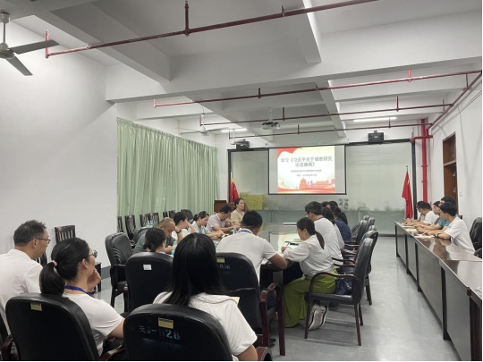 会上,袁增强同志指出,《习近平关于调查研究论述摘编》由中共中央党史和文献研究院、中央学习贯彻习近平新时代中国特色社会主义思想主题教育领导小组办公室联合编辑,是全党深入开展学习贯彻习近平新时代中国特色社会主义思想主题教育的学习材料。各位教工党员要原原本本学,多思多想、学深悟透,深刻领悟“两个确立”的决定性意义,增强“四个意识”、坚定“四个自信”、做到“两个维护”,把习近平新时代中国特色社会主义思想转化为坚定理想、锤炼党性和指导实践、推动工作的强大力量。