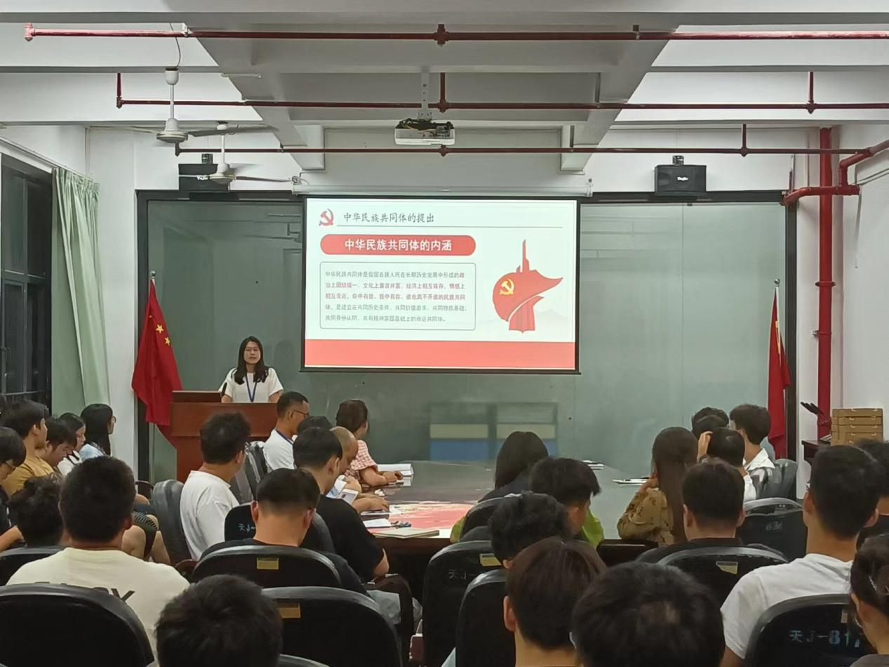 辅导员王娟老师围绕深刻领会铸牢中华民族共同体意识的重大意义,以铸牢中华民族共同体意识为主线,用一个个生动具体的事例,全面系统、深入浅出地为大家讲解了铸牢中华民族共同体意识的重要意义。进一步提高了参会人员民族团结的思想政治觉悟,宣讲内容丰富,反响热烈。