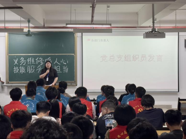 学院党总支组织员仲康佳、团总支书记张章老师分别重点强调了活动流程和安全问题,预祝本次义务维修活动顺利开展。