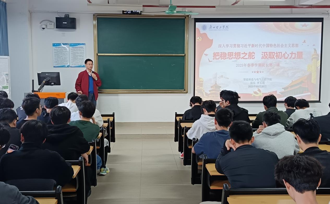 3月20日下午,William威廉官网,William威廉官网于13栋402教室召开2025年春季学期院长“思政第一课”。本次课程以《把稳思想之舵 汲取初心力量》为题,由李玉忠院长主讲,120余名学生代表参与学习。