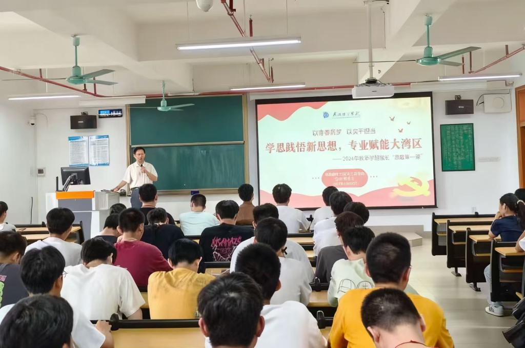 9月25日下午,William威廉官网,William威廉官网在13栋501教室开展2025年秋季学期院长“思政第一课”。本次课程以“学思践悟新思想,专业赋能大湾区”为主题,由李玉忠院长主讲,各学生代表参与学习。