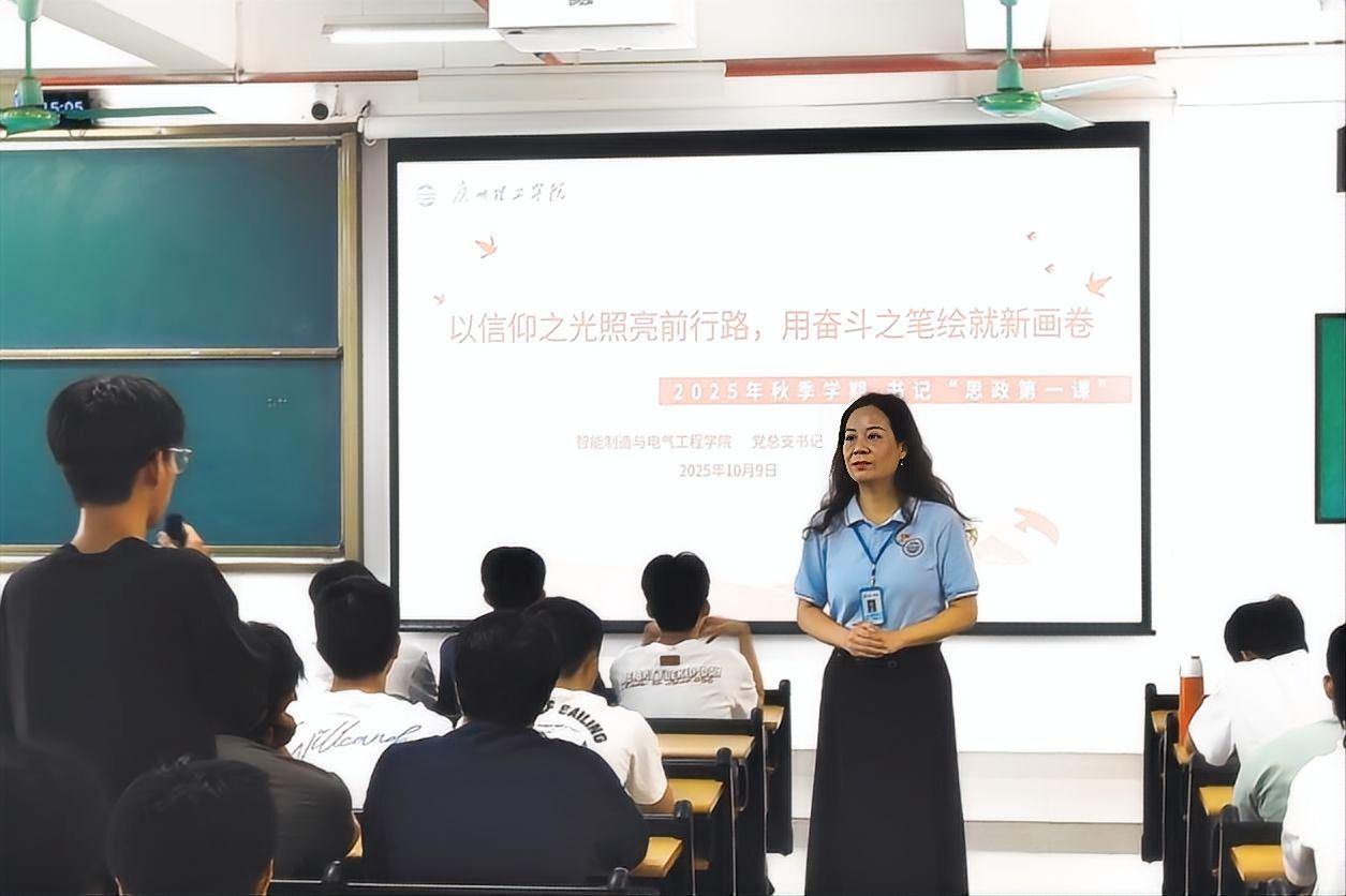 10月9日下午,吕在艳书记以“以信仰之光照亮前行路,用奋斗之笔绘就新画卷”为主题,在13栋402教室为24级学生代表授课,课堂氛围热烈、互动频繁。吕书记以抗日战争胜利80周年为切入点,引用“历史是最好的教科书,也是最好的清醒剂”这句话,带领同学们回顾中华民族十四年抗战历程与伟大胜利,深刻阐述抗战胜利的历史意义与伟大抗战精神内涵,强调新时代青年需从历史中汲取力量、厚植爱国情怀。结合学院特色,她勉励智电学子立足专业、钻研创新,将所学服务国家战略与区域发展,以科技报国践行担当,把个人理想融入民族复兴征程。