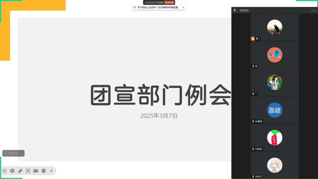 在各部长的带领下,对近期工作成果与不足进行了系统总结,并针对性地提出了改进方向,为新学期工作注入新动能。以梦为帆,蓄力前行!团学将以更专业的姿态、更创新的思维,为学院团学工作注入青春活力!