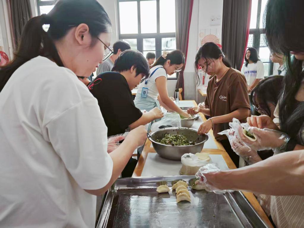 活动伊始,由食堂师傅通过理论与实践相结合的方式,详细讲解面团发酵、馅料调配、包制手法等技巧。在分组实践环节,师生们分工协作,揉面、擀皮、包馅、塑形一气呵成,现场既有“传统派”精心捏制元宝饺、柳叶饺,也有“创意组”尝试玫瑰花饺、小猪馒头等造型,大家在活动中互相交流心得,分享成果,不仅锻炼了动手能力,也增强了团队协作意识。经过2小时的协作,百余只形态各异的水饺和造型独特的馒头新鲜出炉,现场弥漫着浓郁的面香与欢声笑语。