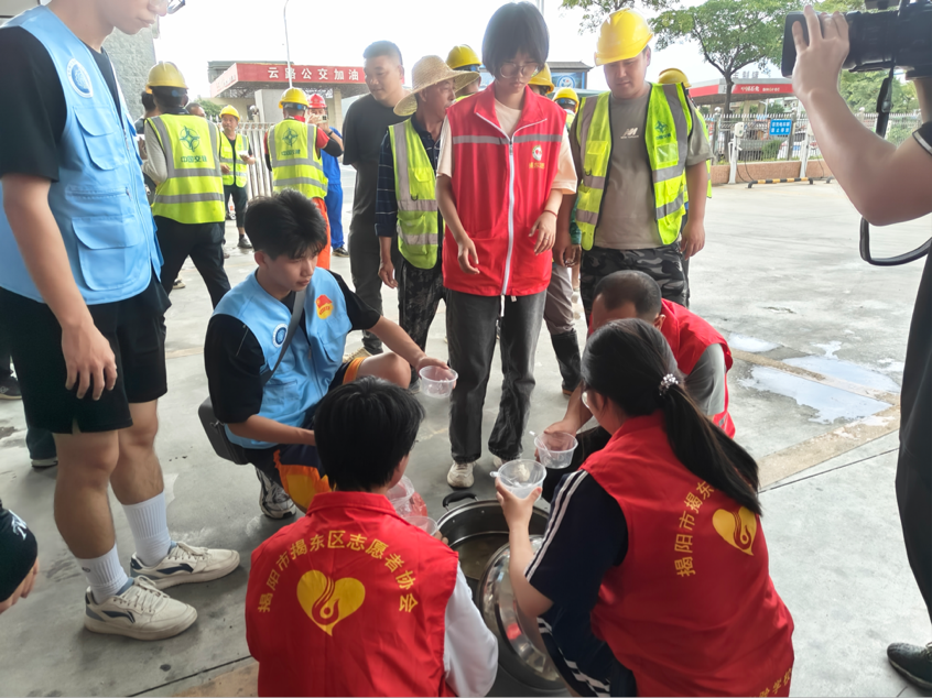 7月9日,鹅卤承香实践队响应传承人号召,联合揭东志愿者协会开展"爱心凉茶"志愿行动。面对持续高温,队员们凌晨即起熬煮兼具解暑与养生功效的凉茶,于御龙湾驿站为户外工作者及市民免费派送。活动全程融入文化传承理念:谢师傅现场讲解凉茶配伍中的非遗智慧,学生通过分装、派送、健康宣教等环节,将中医药文化与当代公益精神有机结合。市民"清凉在手,暖意在心"的反馈与协会"注入新活力"的高度评价,印证志愿行动已成为非遗文化传播的生动载体。