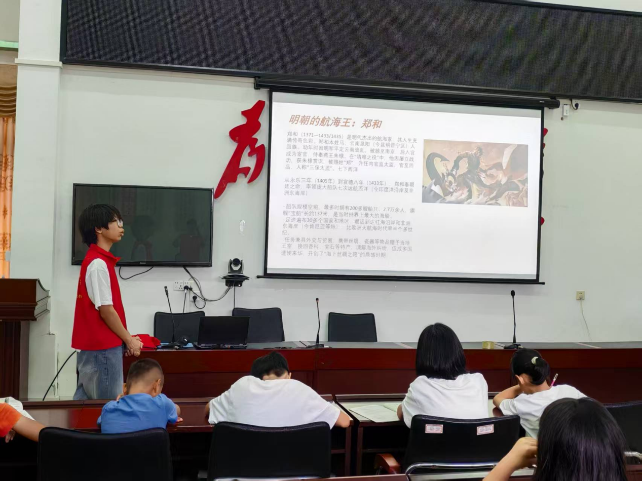 上午的课堂化身为时光隧道,队员担任“历史说书人”,以生动故事引领孩子们走进《大明风云录》的另类帝王世界。孩子们聆听了朱元璋从放牛娃逆袭为开国皇帝的传奇,对他“超爱管闲事”的硬核管理(如规定百姓作息、日批百份奏折)感到新奇;见识了“木匠达人”朱由校的精巧木工技艺,探讨其“不务正业”背后的专注匠心;更通过分组角色扮演,沉浸式体验“朱允炆失踪之谜”的宫廷悬案,在“自焚派”与“逃亡派”的趣味辩论中点燃历史思辨的火花。