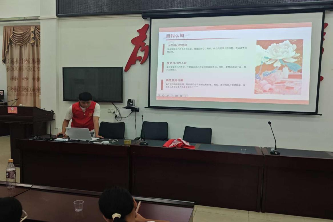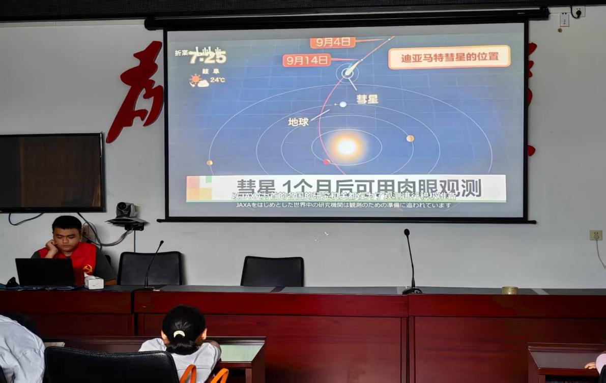 夜幕降临后,突击队在活动场地为孩子们放映了动画电影《你的名字》。影片唯美的画风与动人的故事深深吸引了大家。队员们结合片中“绳结”“口嚼酒”等元素,解读其中蕴含的文化联结意象,欢乐的笑声与掌声点亮了九益村的夏夜星空。