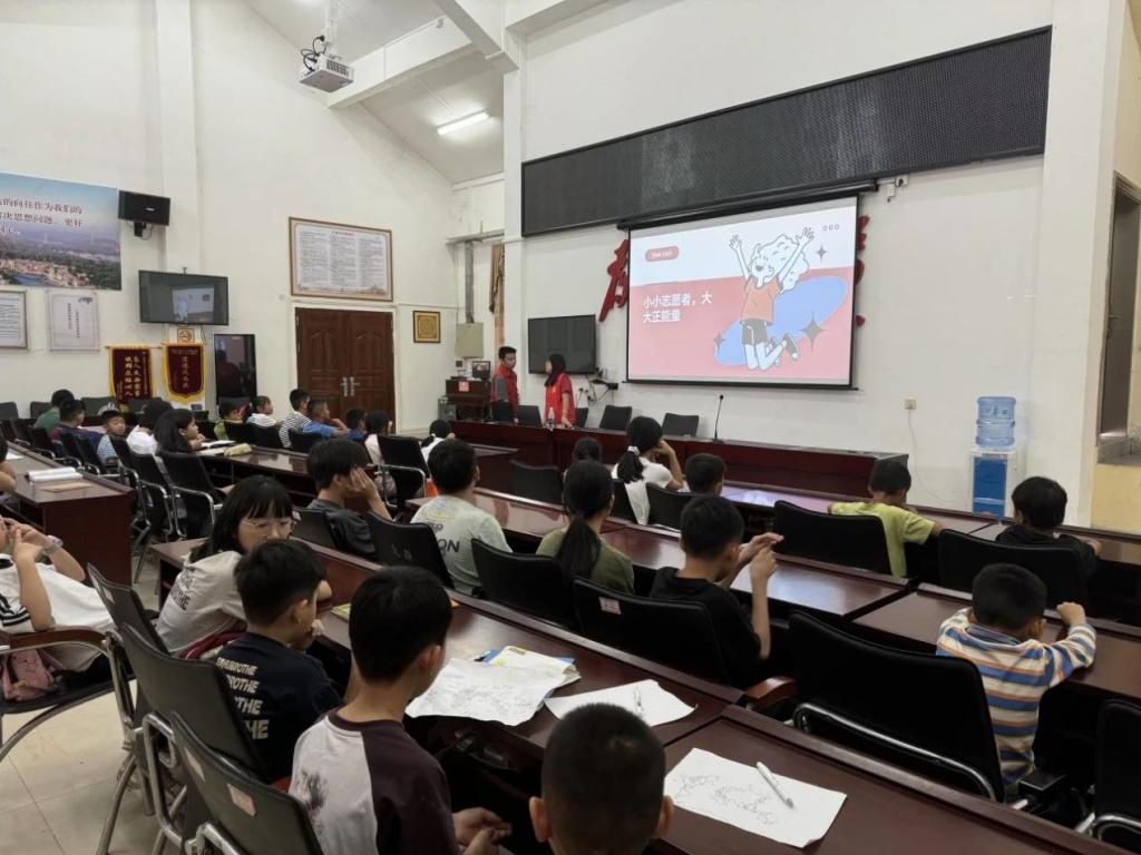 课堂伊始,“暖光夏行”突击队的队员们首先为孩子们带来一堂生动的志愿服务启蒙课。队员们以通俗易懂的语言,向孩子们阐释了志愿服务的核心内涵——即个人或组织自愿、无偿地奉献时间、技能或资源,为他人和社会提供公益服务。他们引导孩子们理解志愿服务的鲜明特征:自愿性、无偿性、公益性、组织性,并重点弘扬了“奉献、友爱、互助、进步”的志愿服务精神。队员们强调,突击队在九益村的活动正是践行这八字精神的具体体现,并鼓励孩子们未来也能将这份关爱他人、服务社会的理念融入生活。这堂启蒙课在孩子们心中悄然播下了志愿精神的种子,为后续活动奠定了积极的价值基调。