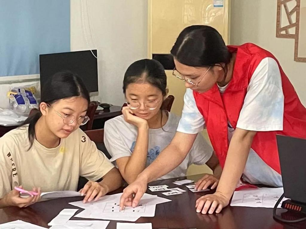 上午,“锦带花”突击队分成两路,两名队员留在田江村村委给孩子们上课,剩余六名队员前往省农科院茶叶研究所继续开展茶文化调研。留在田江村村委的队员们为孩子们带来了一堂生动有趣的"逐帧动画科普课程",教室秒变动画工作室。通过精心准备的课件,队员们用通俗易懂的方式向孩子们讲解动画制作的原理:"就像翻书一样,快速翻动连续画面就会产生动的感觉"。