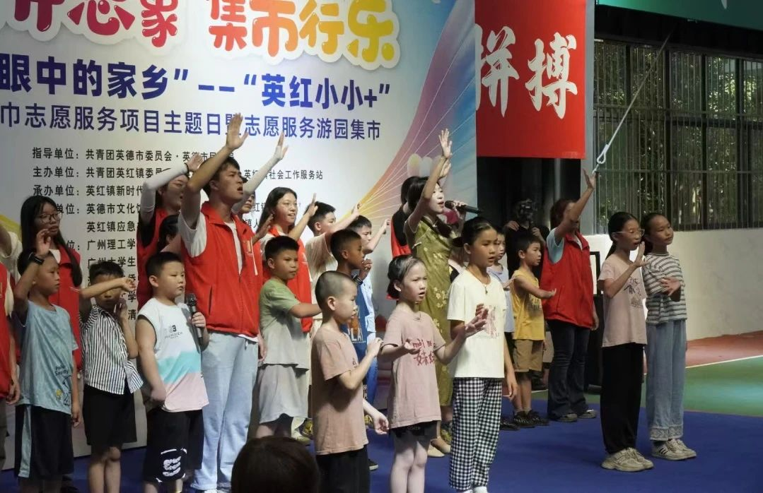 下午,全体队员前往英红镇体育馆参加"我眼中的家乡"志愿服务游园集市活动。作为"英红小小+"红领巾志愿服务项目的重要环节,本次活动汇聚了多所三下乡的实践队伍,吸引了200余名学生和家长参与。