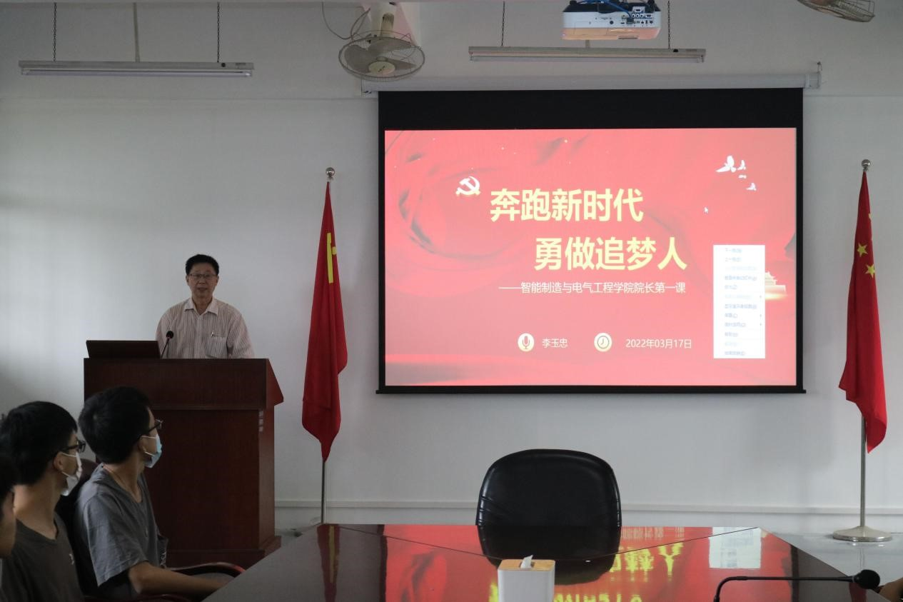 院长李玉忠在机电楼305以“奔跑新时代,勇做追梦人”为题授课。他以党百年光辉历程为脉络,回顾我党百年的艰辛历程,以“十个明确”“两个确立”“深入领会中国共产党百年经验启示”为切入点,结合国内外疫情防控形势,希望同学们积极配合学校防疫抗疫工作,发挥先锋模范作用。