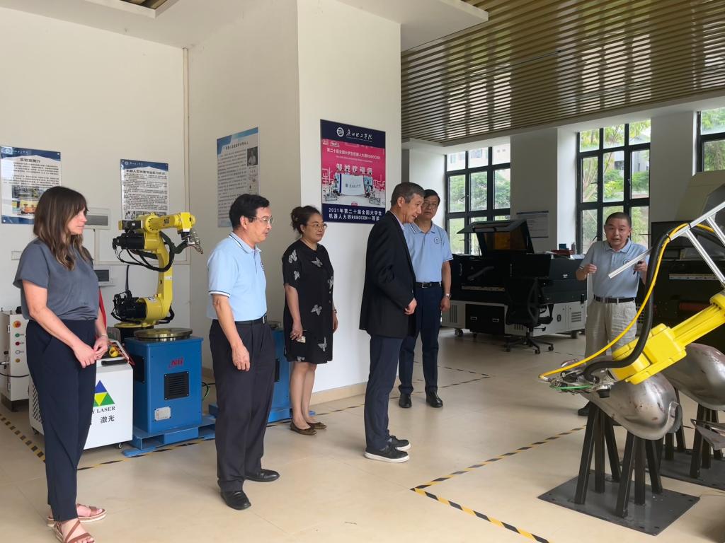 (陈露 高敏)6月26日,在中教国际教育交流中心指导下,美国南伊利诺伊大学爱德华兹维尔分校机械和机电一体化专业系主任闫小军、国际学生和学者服务部负责人艾米•纳瑟(Amy Nusser)一行来访。