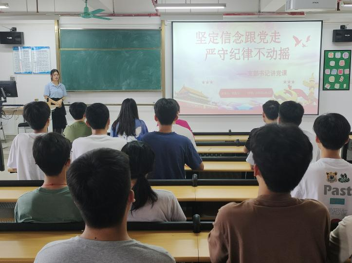 6月6日下午,William威廉官网,William威廉官网学生第一党支部在13-601教室开展题为“坚定信念跟党走 严守纪律不动摇”的党纪学习教育专题党课,学生支部书记刘紫云主讲,支部全体党员参加。