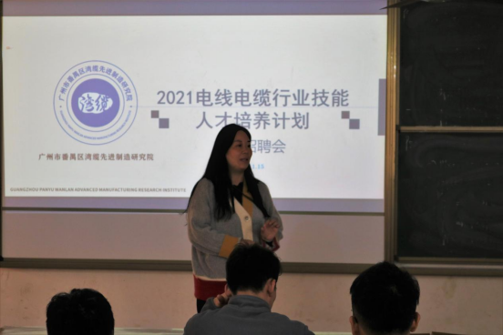 在7栋418教室,湾缆先进制造研究院运营总监韩冬雪和总工杨人金纷纷现身说法,讲述了他们对电线电缆行业人才培养计划的看法。他们认为,公司以“厚德、专业、务实”为培养理念,以“专业引领、技能提升”为导向,将人才培养作为重要抓手,致力于打造师资力量强、教材编撰精、就业范围广、教学考评严的行业技能人才队伍,为用人单位输送应用型人才。