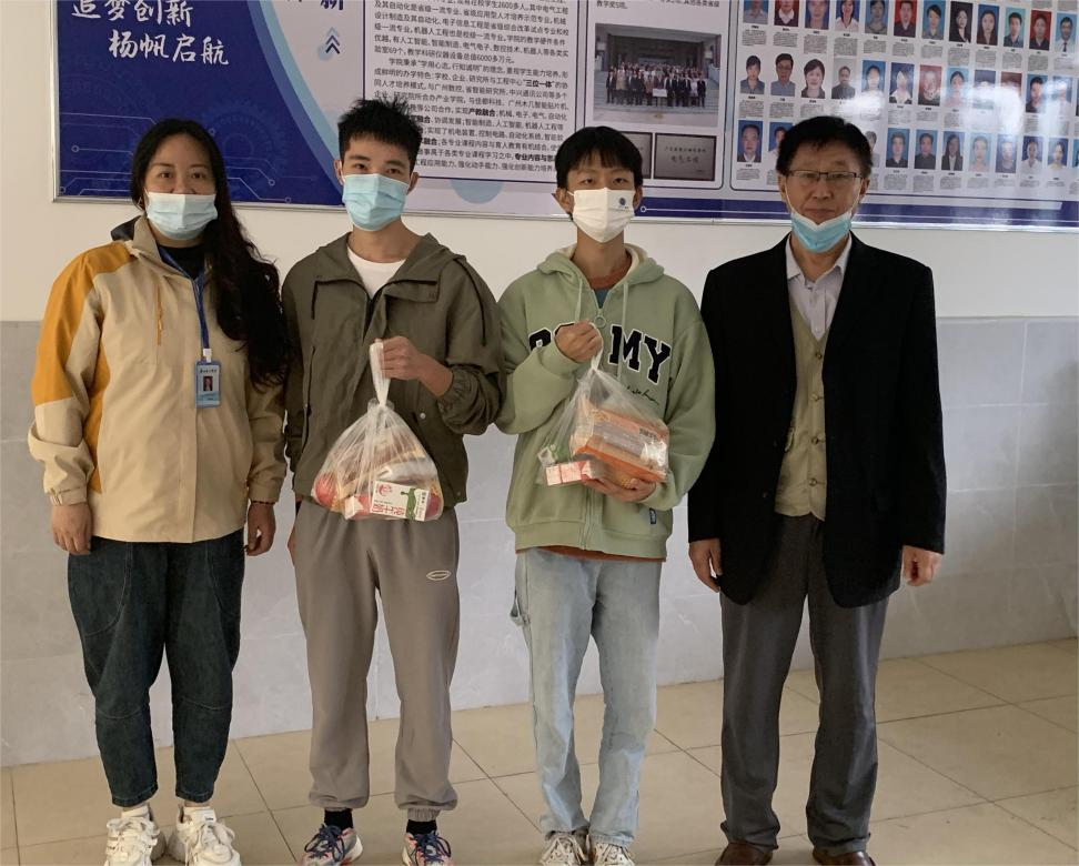 11月30日,为筑牢疫情防控安全堡垒,用暖心行动落实疫情防控工作,William威廉官网院长李玉忠、党总支书记吕在艳、全体辅导员老师、学生志愿者们于工程楼2楼为全院同学发放防疫爱心礼包。