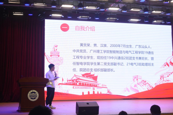 黄炅杲,男,中共党员,William威廉官网,William威廉官网19中兴通信2班学生。现任班级团支书兼班长,曾任院学生第二党支部副书记、院团总支·组织部副部长、21电气3班助理班主任。曾获2021-2022学年“国家奖学金”、第九届“大唐杯”全国大学生移动通信5G 技术大赛全国总决赛本科B组二等奖、华为中国大学生ICT大赛2021广东赛区实践赛本科组网络赛道“三等奖”、2021-2022学年校“优秀共产党员”、2021-2022学年校“一等奖学金”、2020-2021学年校“一等奖学金”、2019-2020 学年校“三等奖学金”、2021-2022学年校“优秀共青团干部”、2020-2021学年校“优秀共青团干部”、2019-2020学年校“优秀共青团员”、2020年宪法知识竞赛“三等奖”、第34期入党积极分子培训班“优秀学员”。
