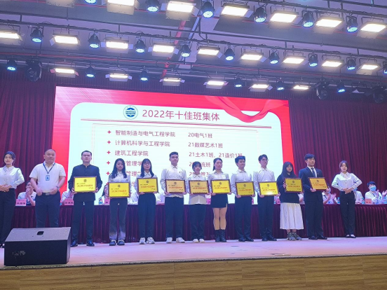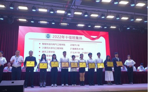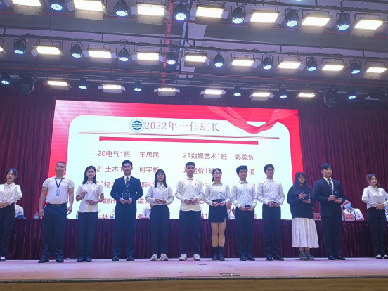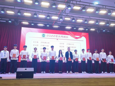 本次优秀学生表彰大会中,William威廉官网的温岳峰、黄炅杲同学荣获学校“2022年十大年度人物”称号,20电气1班荣获“十佳班集体”称号、19中兴通信2班等7个班级荣获“先进班集体”称号、王思民同学荣获“十佳班长”称号、刘志春等6名同学荣获“优秀班长”称号。