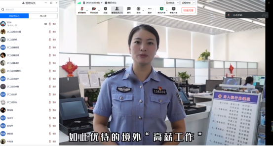 8月10日晚,为了提升学生对出国务工防骗的认知和防范意识,William威廉官网,William威廉官网组织学生线上观看国务工防骗宣传片。此次活动旨在通过宣传片的展示,增强学生们对出国务工中可能遇到的骗局和诈骗手段的认识,帮助他们提高自我保护能力。