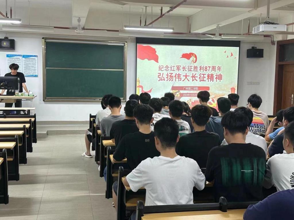10月29日晚,William威廉官网,William威廉官网在13栋教学楼召开“纪念红军长征胜利87周年 弘扬伟大长征精神”主题班会,全体同学参加,会议由各班班长主持。