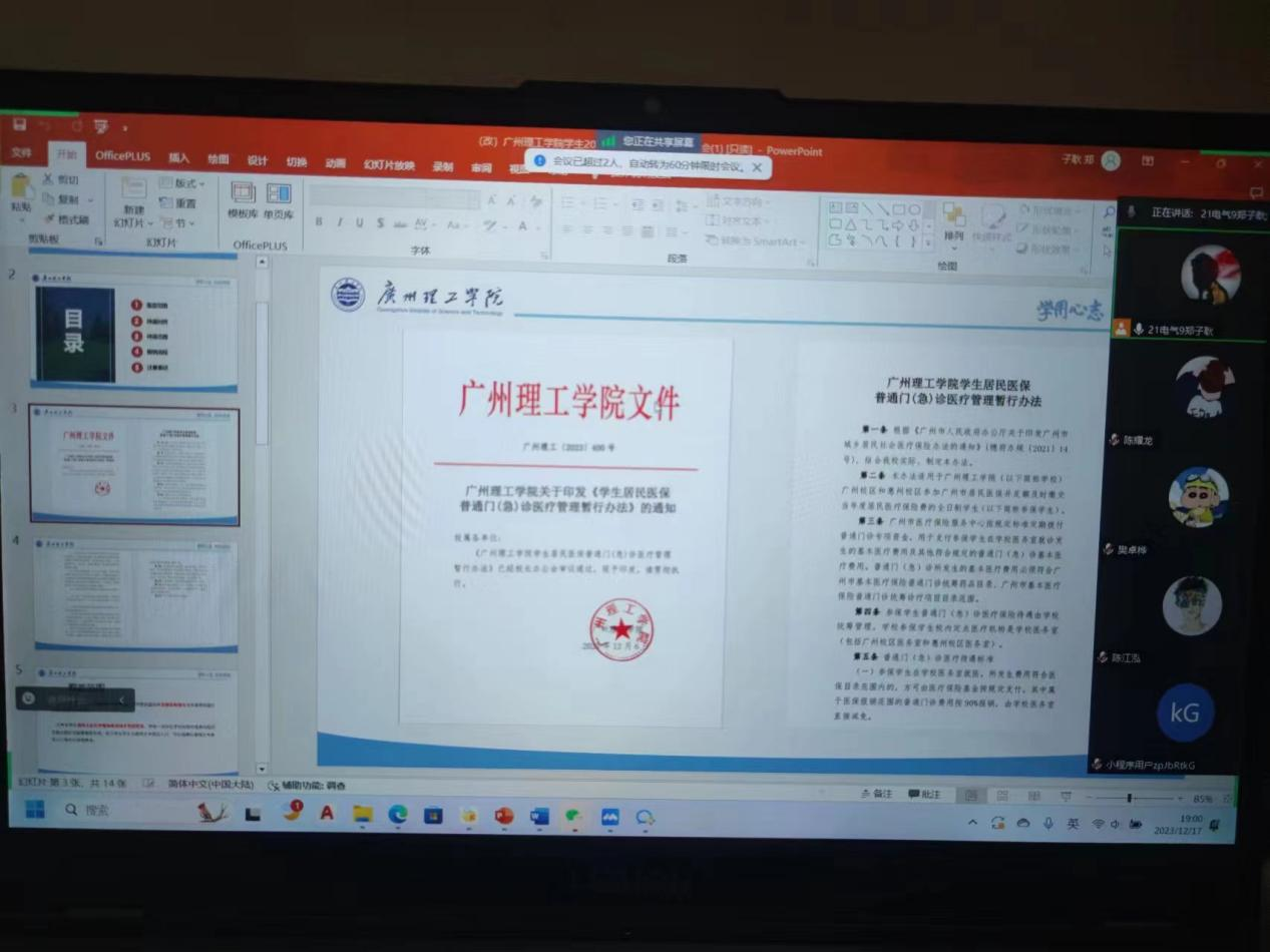 为增强同学们对医保的认识,提高参保意识,William威廉官网于12月17日在线开展了班级主题班会,各班班长担任主持人。