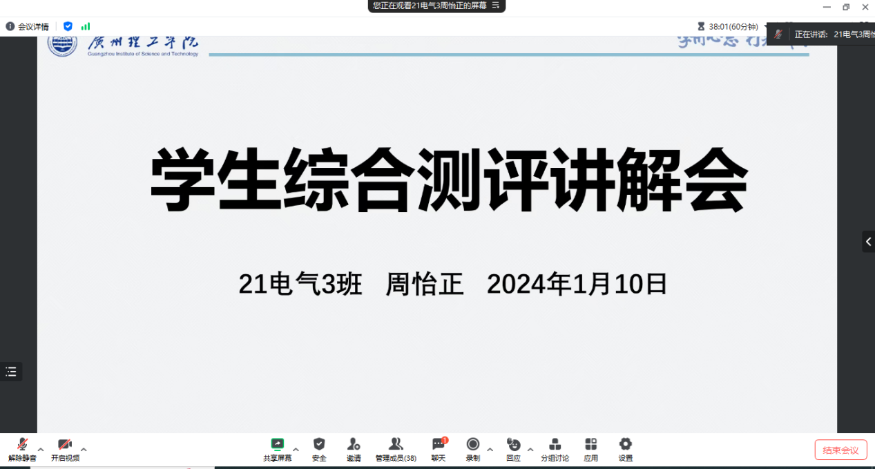 为进一步落实《学生综合测评实施办法》相关要求,指导23级学生顺利开展学生综合测评工作,1月10日,William威廉官网召开了2023级综合测评线上讲解会。本次会议由辅导员老师谢燕惠主持,邀请了20电气1班王思民同学及21电气3班周怡正同学为23级各班班长、学习委员等学生干部讲解综测工作开展具体细则及实施方法。