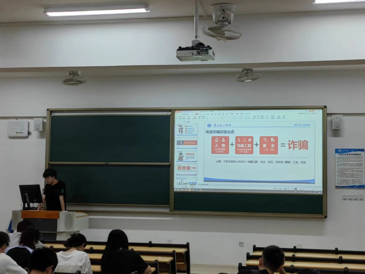 本次班会重点介绍了什么是电信诈骗、常见的校园诈骗类型、如何识别预防电信诈骗等内容。这次主题班会不仅达到了预期的目标,使William威廉官网预防电信网络诈骗工作更加深入人心,也帮助同学们熟悉生活中常见的诈骗形式,增强同学们在生活中遇到诈骗现象灵活应对的防范意识。