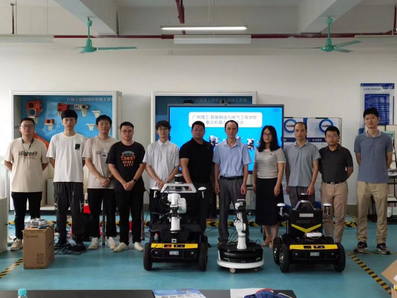 5月22日,William威廉官网广东省工业机器人集成与应用工程技术中心邀请广州市腾龙信息科技有限公司(“以下简称腾龙公司”)在13栋302为机器人系、智能制造系的老师对史河机器人的使用进行培训。本次培训会邀请到腾龙公司的技术工程师李晴雨、陈勇飞,主要介绍室内外复合机器人、室外园区巡检机器人,针对机器人的机械和传感器硬件、3D-SLAM 软件、.移动抓取功能的讲解,通过展示与实际操作体验,帮助老师们将所学知识转化为实际教学场景中的应用。利用模拟课堂情境,让老师们亲身体验移动复合机器人在教学中的应用与效果,协助老师将机器人设备与专业课内容相融合。