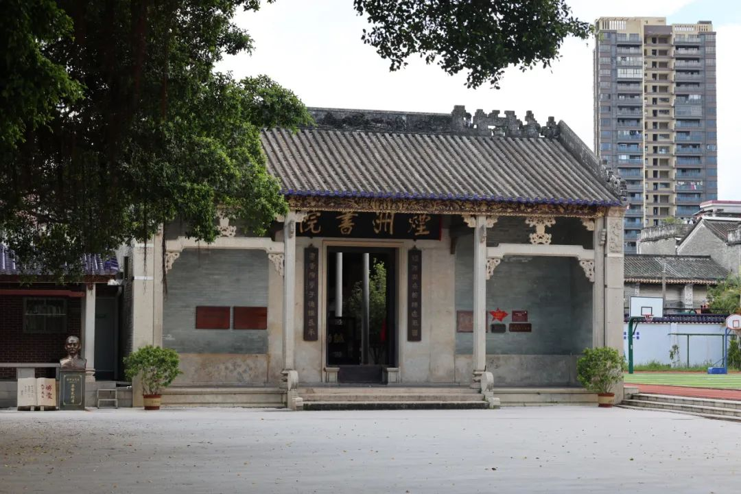 在探寻陶塑瓦脊艺术的同时,实践队也深入了解了黄氏的发展历史。黄氏家族辛勤耕耘,繁衍发展,在岁月的长河中传承不息。离开黄氏大宗祠后,实践队来到了烟洲小学。这里的烟洲书院承载着学校的悠久历史和文化传承。烟洲书院位于广东省中山市西区长洲社区石台街4号,于清代同治十二年(1873),由乡绅黄虞臣等筹建,2004年重修。建筑坐北向南,硬山式顶,三进三间布局,建筑面积618平方米。头进和后进为砖木结构,二进为抬梁式木架构,头进与二进中间有卷棚廊相连,是珠三角地区别具特色的书院。抗战时期曾作为中共长洲乡支部的活动基地。2008年被广东省人民政府公布为广东省文物保护单位。多年来,学校一直致力于传承和弘扬优秀传统文化。