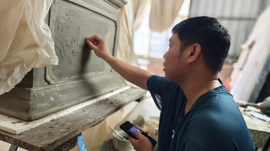 6、工艺区,师傅们运用各种工具和技巧,对陶塑进行精细的雕琢和修饰,使其细节更加丰富和完美。