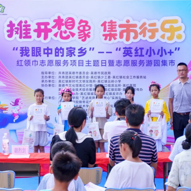 下午,英红镇云岭小学内举办了《“摊”开想象,“集市”行乐》“我眼中的家乡”——“英红小小+”红领巾志愿服务项目主题日暨志愿服务游园集市活动。多位地方领导和嘉宾出席了此次活动,包括英德市民政局副局长胡烈剑、清远市社会工作督导办公室督导王华英、共青团英德市委员会挂职副书记苏思慧、英红镇副镇长潘智胜、英红镇云岭小学校长刁长敬出席了此次活动,现场氛围热烈。