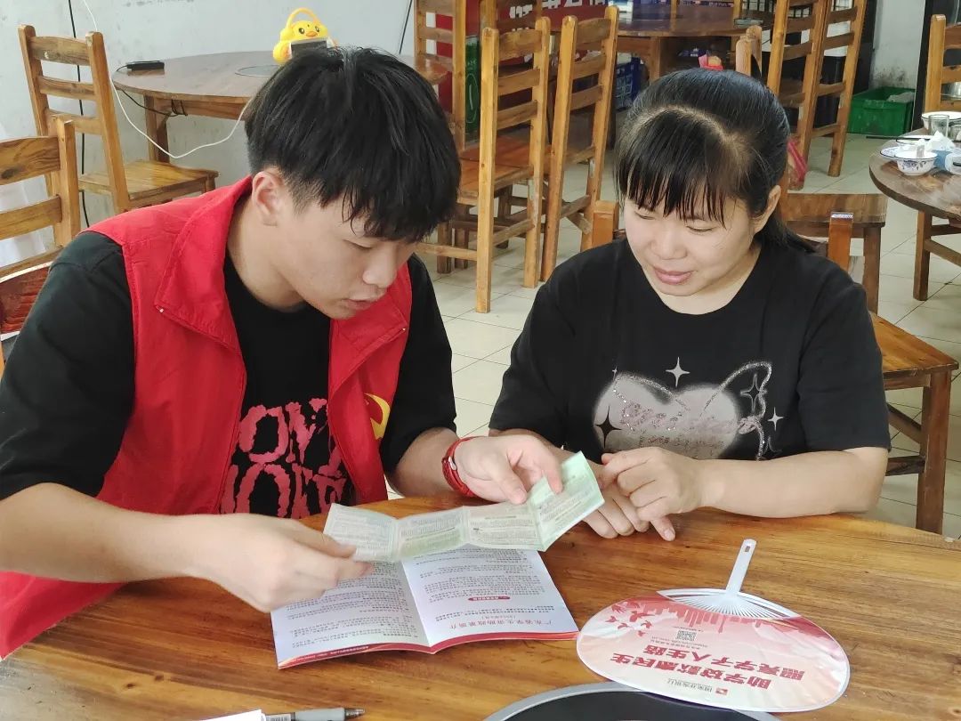 队员们手持宣传资料,沿着小洞村工业园区周边的商铺进行宣讲,向过往群众详细介绍学生资助政策,并解答相关问题。