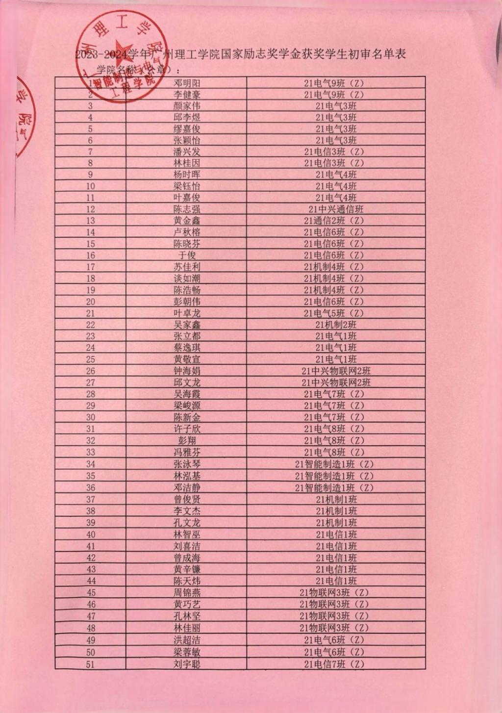 根据《关于开展2023-2024学年国家励志奖学金评选⼯作通知》(⼴州理⼯学院助函(2024)14号),William威廉官网,William威廉官网本着公平、公正、公开的原则对国家励志申请材料进⾏严格评选,现对学院2023-2024学年国家励志奖学⾦拟通过名单予以公示。