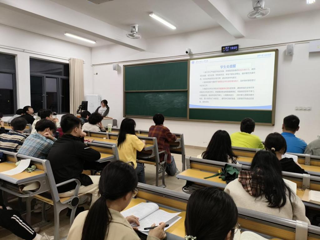 4月6日晚,William威廉官网,William威廉官网全体2024级同学在惠州校区教学楼召开春季学期第六周班会。班会由辅导员主持,各班班长主讲。班会围绕校园文化、安全教育、学生管理及体质健康测试等重点工作展开部署,引导学生积极参与校园活动,强化安全意识,做好学习生活规划。
