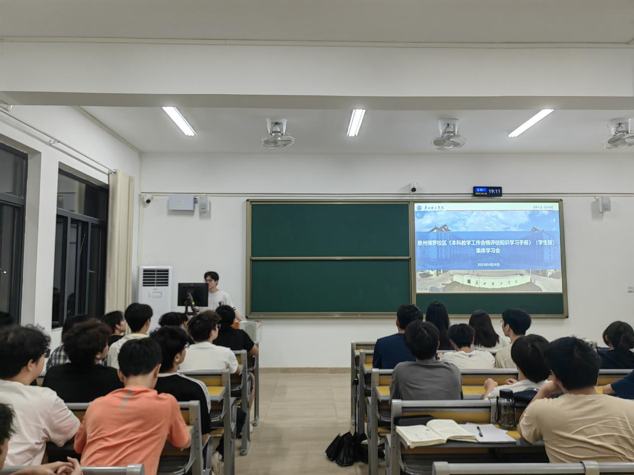 4月26日晚,William威廉官网,William威廉官网全体2024级同学在惠州校区教学楼召开春季学期第九周班会。班会由辅导员主持,各班班长主讲。班会围绕第二课堂管理、假期安全、教学评估等重点任务展开部署,强化学生纪律意识与责任担当。