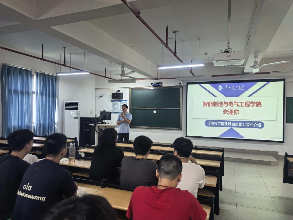 活动中,罗老师还重点介绍了本专业的课程体系,包括专业核心课程和主要专业实验/实训项目,强调了实践教学在电气工程及其自动化专业中的核心地位。此外,他还向新生们展示了学院雄厚的师资力量和先进的教学条件,增强了新生们对专业学习的信心。