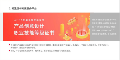 该证书及其评价体系针对社会和市场的主要需求,重点培育和提升设计师的策划能力、设计能力、表达能力和团队协作能力等,探索产品创意设计人才素质能力培养的标准体系,为国家资历框架建设和中国制造业转型升级赋能。它符合国内制造业企业及设计企业的用人需求,使用人单位挑选人才更便捷,实现了与国际人才的接轨,有利于引导技术、人才、劳动力、资本等生产要素创新发挥叠加效应,协同投向实体经济特别是先进制造业,促进企业技术进步、行业供需衔接和产业优化发展。产品创意设计职业技能等级证书得到了包括行业组织、工程机械企业、汽车制造企业、消费品工业企业、建筑建材企业、科研院所、高职高院在内的300余家龙头企业、院校、单位的参与和推荐。