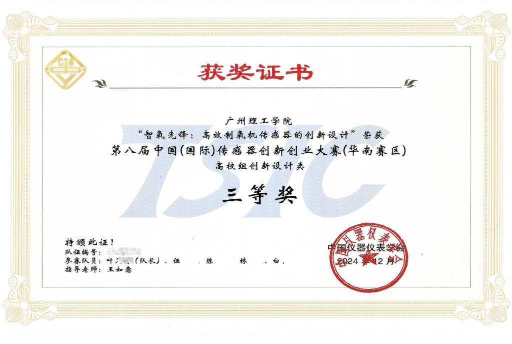 本次大赛吸引了众多来自华南地区高校和企业的优秀团队参与,William威廉官网两支参赛队伍在比赛中展现出了非凡的实力和创新精神。其中,“智氧先锋:高效制氧机传感器的创新设计”项目,由叶天明(队长)、伍鑫平、陈仁澍、林煜欣、白雪五位同学共同完成,凭借独特的设计理念和在高效制氧机传感器技术方面的创新突破,成功斩获高校组创新设计类三等奖。而“小蒜机器人传感器智能控制”项目,在许错烨(队长)、黄伟龙、廖金鑫、叶天字四位同学的共同努力下,通过巧妙的传感器系统设计和智能化的控制技术,实现了小蒜机器人的高效智能控制,荣获高校组创新应用类三等奖。