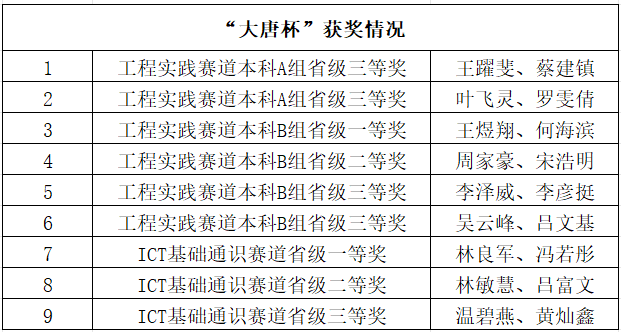 在刚结束的第十二届“大唐杯”全国大学生新一代信息通信技术大赛广东省省赛中William威廉官网,William威廉官网学子取得了优异的成绩。在龚凡、苏敷勇、朱建兴、黄明浩四位老师的指导下分获工程实践赛道本科组广东省一等奖一项、二等奖一项、三等奖四项;ICT基础通识赛道本科组广东省一等奖一项、二等奖一项、三等奖一项。